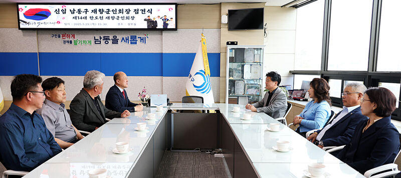 인천시 남동구는 구청장 집무실에서 새롭게 선출된 한도균 제14대 남동구 재향군인회장 외 임원진 8명과 접견식을 갖고 지역사회의 발전을 위한 소통의 자리를 마련했다고 밝혔다.