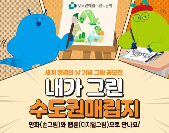 환경부 산하 수도권매립지관리공사는 세계환경의날을 맞아 환경기초시설의 공익적 역할을 친근하게 알리기 위한 ‘내가 그린 수도권매립지’ 웹툰·만화 공모전을 6월 5일부터 개최한다고 밝혔다.