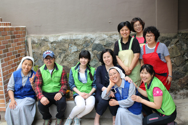 독거 어르신을 위한 도시락 봉사활동에 참가한 그린조이 임직원과 봉사자들