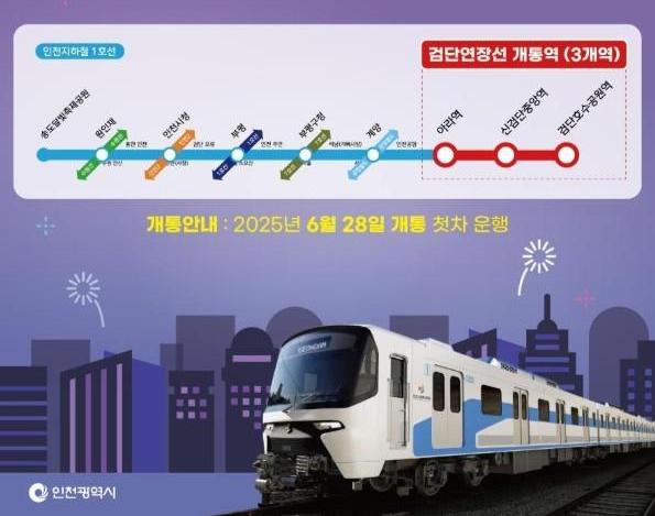 인천광역시(시장 유정복)는 오는 6월 27일 오전 10시, 인천도시철도 1호선 검단연장선의 개통을 기념하는 공식행사를 신검단중앙역(102역) 지상에서 개최한다고 밝혔다.