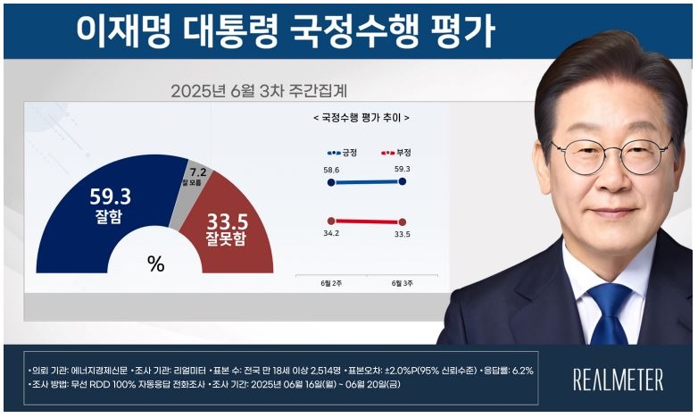 대통령 국정지지율 59.3% 민주 48.4%-국힘 31.4% [리얼미터]