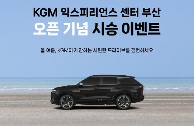 KG 모빌리티(KGM)가 `KGM 익스피리언스 센터 부산` 개관에 앞서 보다 많은 고객에게 다양한 시승 경험을 제공하기 위해 개관 기념 시승 모집 이벤트를 개최한다고 밝혔다.