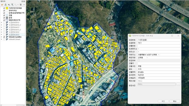 서울 노원구가 상계재정비촉진지구 내 기존 무허가건축물 783동을 체계적으로 관리하기 위해 QGIS 기반 ‘기존무허가건축물 공간정보 플랫폼’을 자체 개발했다.
