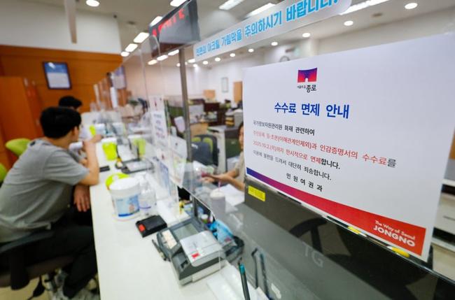 이번 조치로 주민센터를 방문하는 경우, 주민등록표 등·초본 발급(기존 400원)과 인감증명서 발급·변경신고(기존 600원)에 대한 수수료가 전액 면제된다.