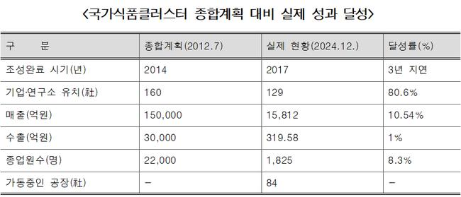 국가식품클러스터 종합계획 대비 실제 성과 달성