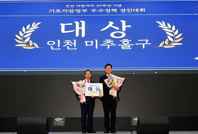 인천 미추홀구(구청장 이영훈)는 지난 26일 대한민국 시장군수구청장협의회가 주관한 민선 8기 전국 기초 지방정부 우수정책 경진대회에서 `종합 대상`을 수상했다.