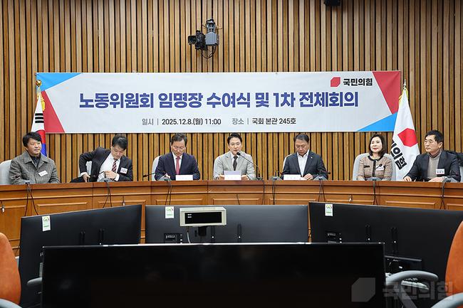 국민의힘은 8일 국회에서 노동위원회 임명장 수여식과 제1차 전체회의를 열고 장동혁 대표와 김위상 신임 노동위원장이 현 노동정책의 문제점을 지적하며 노동개혁과 노사 상생 방안을 추진하겠다는 입장을 밝혔다.