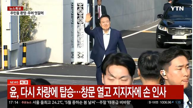 실시간 윤석열 부부 관저 퇴거 / YTN 보도 화면 캡처