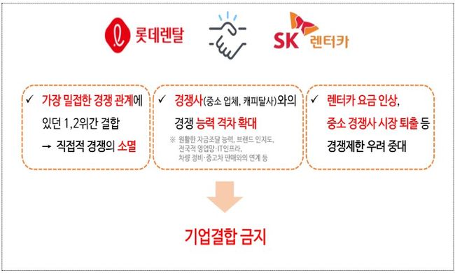 공정위는 이번 결합이 시장에 미치는 영향이 크다고 보고 경쟁사와 고객사 의견 수렴, 렌터카 이용자 1,500명을 대상으로 한 설문조사, 경제분석 등을 통해 면밀히 검토했다. 그 결과 단기 렌터카와 장기 렌터카 시장 모두에서 가격 인상과 중소 사업자 배제 가능성이 크다고 결론 내렸다.