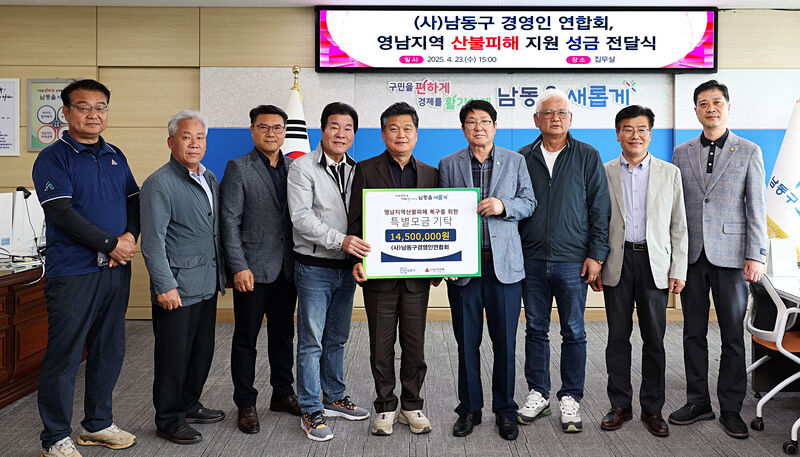 인천시 남동구는 사단법인 남동구경영인연합회로부터 영남 지역 산불피해 복구를 위한 특별 성금 1,450만 원을 전달받았다고 24일 밝혔다.