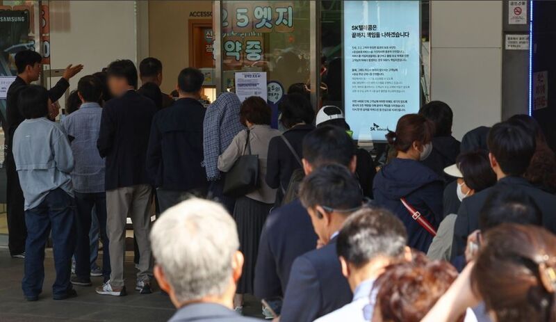 SK텔레콤이 유심 무상 교체"새벽 6시부터 줄섰어요"유심 교체 이틀째에도 '긴 줄'