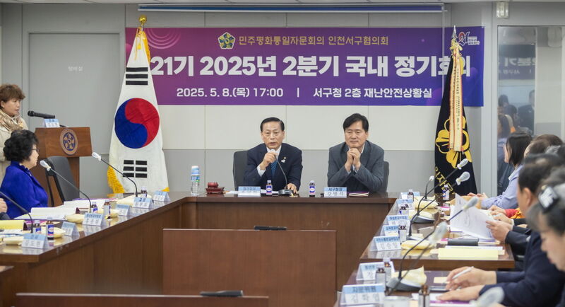 민주평화통일자문회의 인천서구협의회는 지난 8일 서구청 재난안전상황실에서 강범석 서구청장, 자문위원 등 40명이 참석한 가운데 ‘대내외 환경 변화와 통일․대북정책 추진 방향’을 주제로 ‘2025년 2분기 정기회의’를 개최했다고 12일 밝혔다.